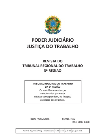 PODER JUDICIÁRIOJUSTIÇA DO TRABALHOREVISTA DOTRIBUNAL REGIONAL DO TRABALHO3ª REGIÃOTRIBUNAL REGIONAL DO TRABALHODA 3ª REGIÃOOs acórdãos e sentençasselecionados para estaRevista correspondem, na íntegra,às cópias dos originais.BELO HORIZONTE SEMESTRALISSN 3085-8488 Rev. Trib. Reg. Trab. 3ª Reg. Belo Horizonte v. 71 n. 111 p. 1-880 jan./jun. 2025